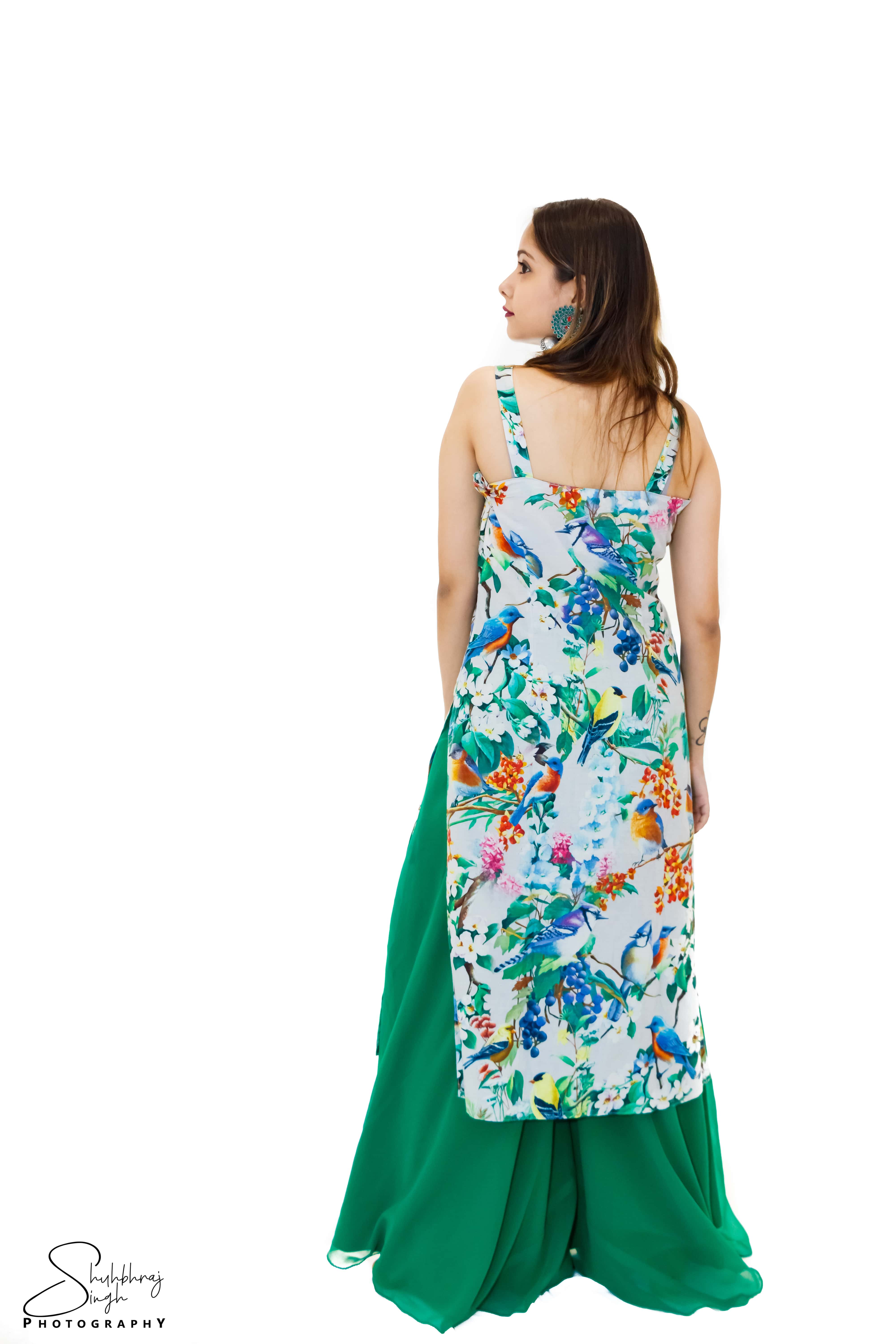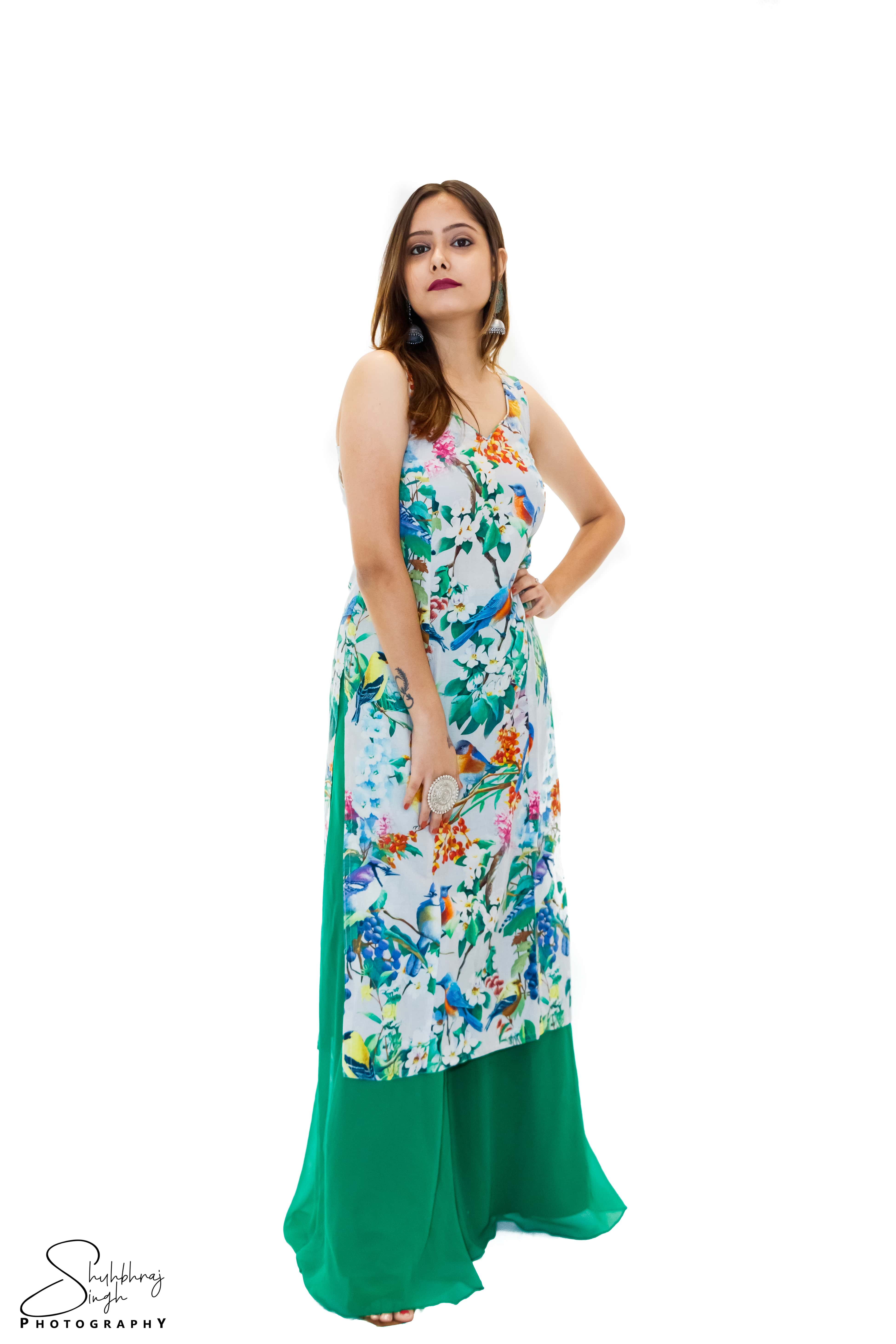 A DESIGNER KURTA FLORAL PRINT WITH PLAZZO.